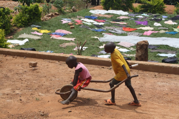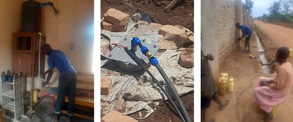 den technischen Aufbau, eine Solarpumpe und Solarpanels zur Förderung des Wassers sowie einen neuen Tank mit einem Zapfhahn außerhalb des Grundstücks und je eine Trinkwasser-Zapfstelle in der Küche und im Essraum der Kinder.