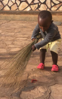 Der Wasserhahn außerhalb des Grundstücks gestattet anderen Dorfbewohnern bei Bedarf Wasser zu holen. Vorrangig werden aber erst die Tanks im Grundstück befüllt. Die Verstärkung der Dachkonstruktion des Hasenstalls ermöglicht den Aufbau der neuen Solarpanels für die Pumpe.