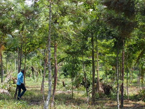 Im Gegensatz zu Baumanns Farm sind die landwirtschaftlichen Aktivitäten in unserem Grundstück eher klein. Momentan sind 4 kleine und 3 mittelgroße Schweine da, keine Muttersau. Rund 16 Hühner bewegen sich frei im Grundstück und Hof und legen manches Ei auch mal im Schlafraum ab, wenn die Tür offen stand. Richard ist von der Fortbildung im ökologischen Landbau (St. Jude Institut) hellauf begeistert und schwärmt uns beiden davon, wie er sein Wissen zukünftig an andere Kleinbauern weitergeben will. Wichtiger Baustein ist für ihn die Kombination von Kuhhaltung und Bananenanbau, weil die Kühe nichts wirklich kaputt machen, sondern im Gegenteil die Bananenpflanzen düngen und Restblätter auffressen. Auch hat er gelernt, wie man über das Spritzen mit einer Spritze in den Pflanzenkörper, Kühe gegen Krankheiten immunisieren kann, ohne sie impfen zu müssen. Er will nicht mehr Schweine oder Hasen haben, weil die zu anfällig für Krankheiten sind. Zum Start, denkt er, seien höchstens zwei Kühe in unserem Grundstück tragbar. Vorher müsse er aber rund einen Acre Wiese ansäen, damit genügend Gras für die Tiere da ist. Ich bitte ihn um einen Kostenvoranschlag für diesen Wiesensamen, den er aber leider nicht bis zur Abfahrt vorgelegt hat. Nachfragen!