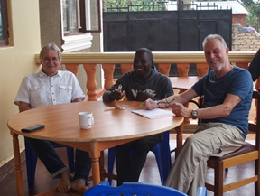 Die Techniker, Samson für die Elektrik und Steve für Sanitär, sind am Dienstag, 26.07., gegen 10:00 Uhr da. Wir gehen zum Bohrloch des neuen Brunnens und erst Samson dann Steve erklären uns ihre Pläne. Steves Vorschlag wird auf Paulos Idee erweitert, sodass in der Küche und im Essraum der Kinder je eine Zapfstelle eingerichtet werden soll. Damit ist die Trinkwasseraufbereitungsanlage überflüssig. Außerdem ist ein weiterer neuer Tank (5.000 l) zwischen Büro und neuer Mauer geplant, der nach draußen zur Straße einen Wasserhahn bekommen soll. Dort können sich die anderen Dorfbewohner bei Bedarf Wasser holen. Vorrangig werden aber erst die Tanks im Grundstück befüllt.